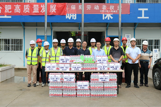 8月21日上午,廬陽產(chǎn)發(fā)公司總經(jīng)理助理吳鋒一行來到合肥金融廣場(chǎng)項(xiàng)目工地,開展“戰(zhàn)高溫、送清涼”慰問活動(dòng)。向項(xiàng)目工地施工人員傳達(dá)廬陽產(chǎn)發(fā)公司關(guān)心關(guān)愛,并送上礦泉水、藿香正氣液等防暑降溫物品。